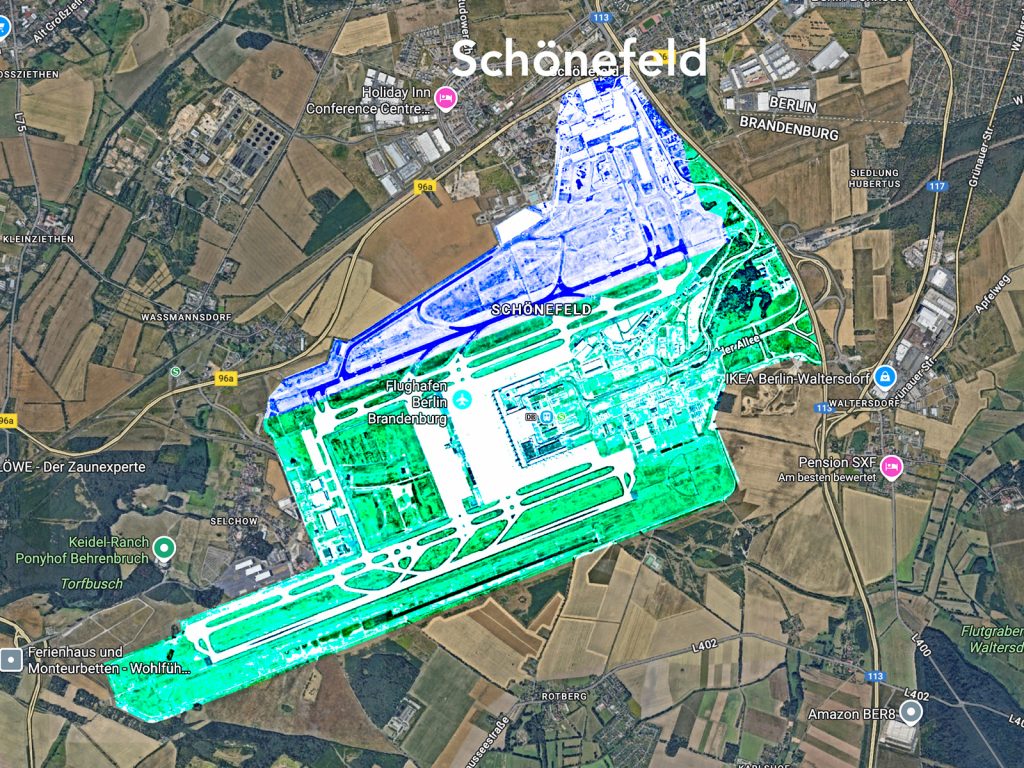 Nächstes Beispiel. Der sowjetische Besatzer eröffnete 1946 bewusst vor den Toren Berlins einen eigenen internationalen Flughafen auf dem Gelände der ehemaligen Henschel-Werke – und wich auf diese Weise dem Sonderstatus des Berliner Stadtgebietes aus. Einst bekannt als Flughafen Schönefeld – und für die DDR das „Tor zur Welt“ – besitzt der heutige Flughafen BER eine eher traurige Berühmtheit (durch Pannen, Verzögerungen und Nachfinanzierungen in der Bauphase). Seine absolute Größe umfasst in etwa das Dreifache dessen, was in letzter Ausdehnung, also mit einer modernen Start- und Landebahn, Schönefeld war. [3, 4]